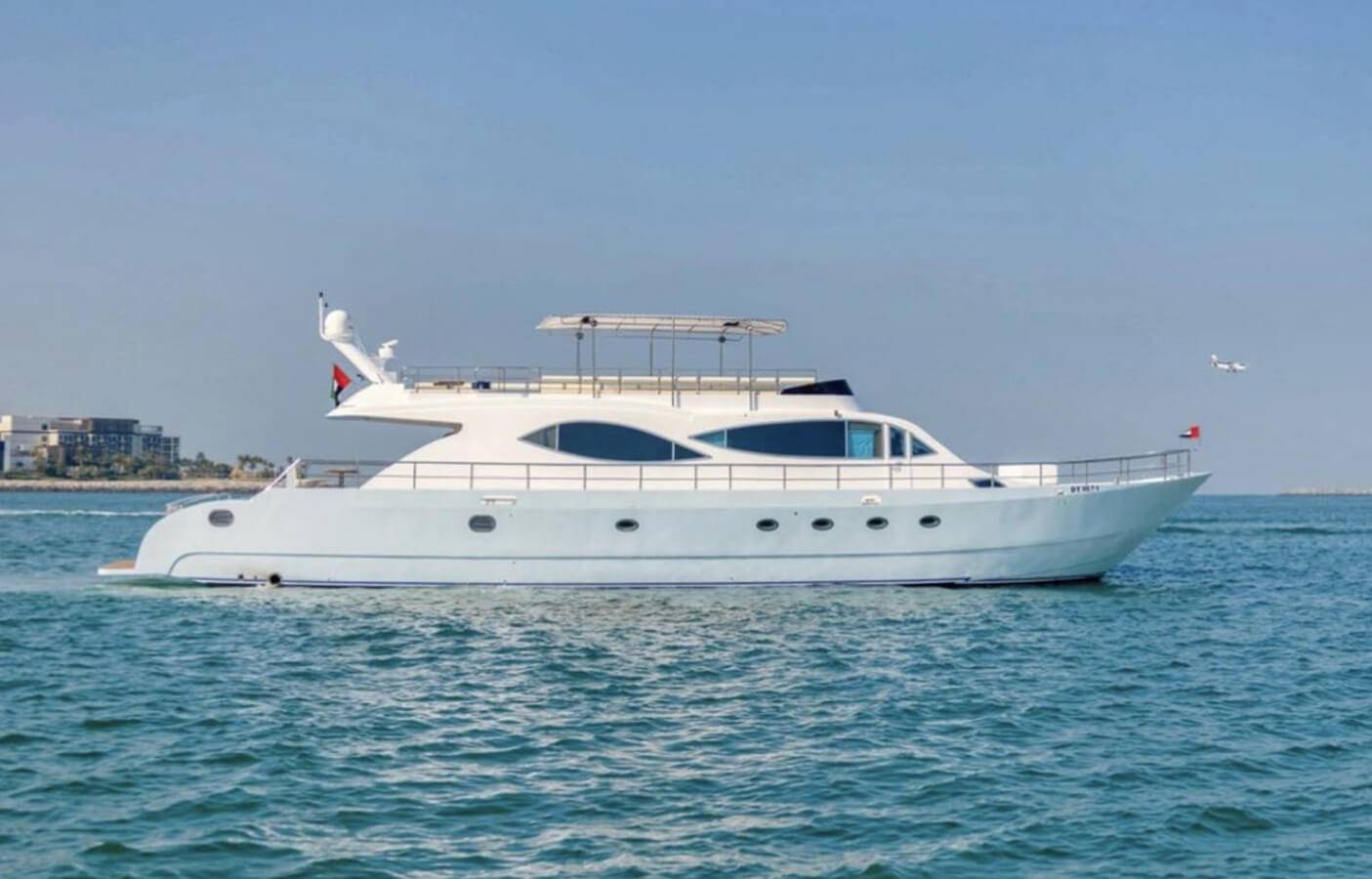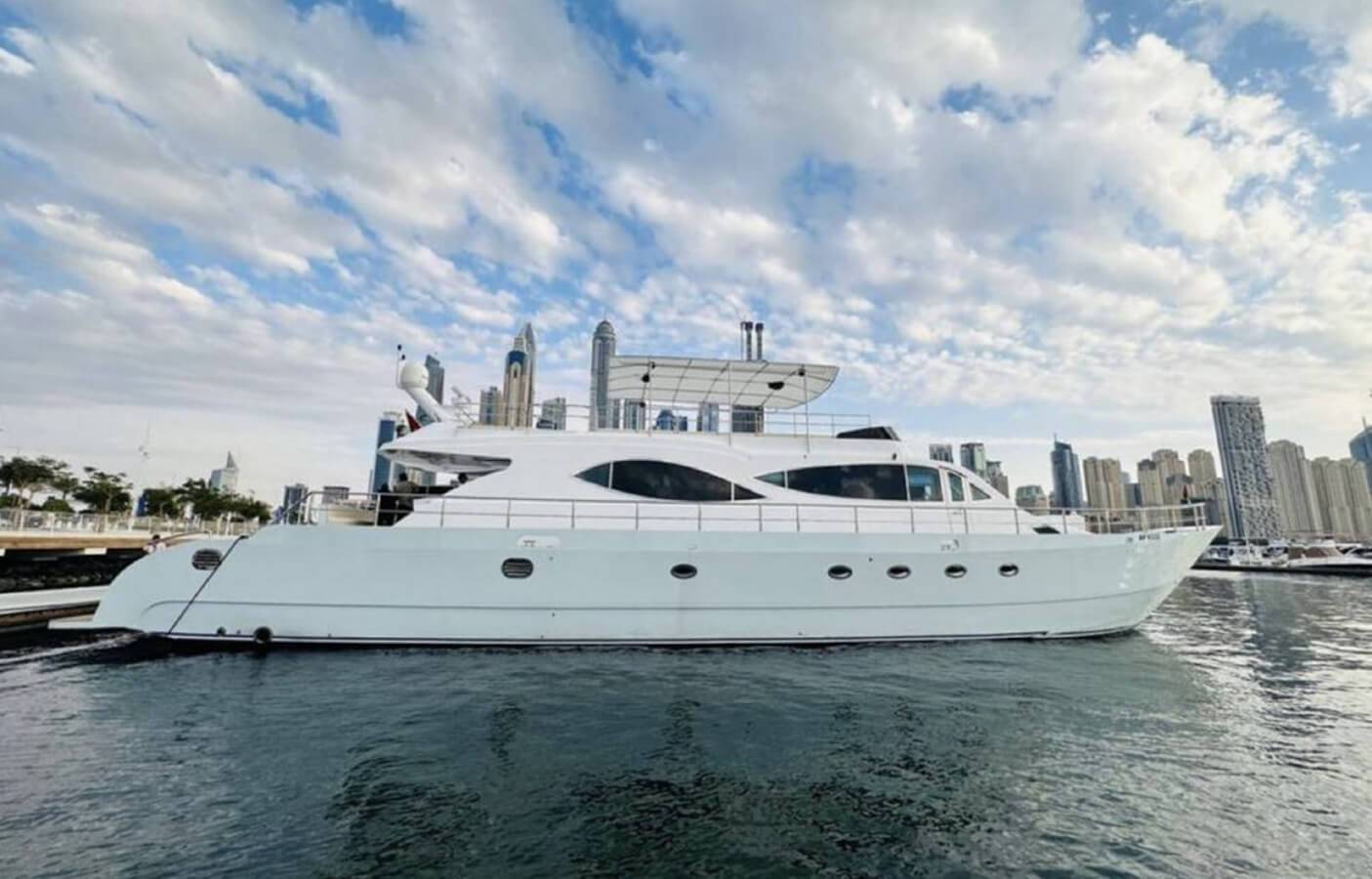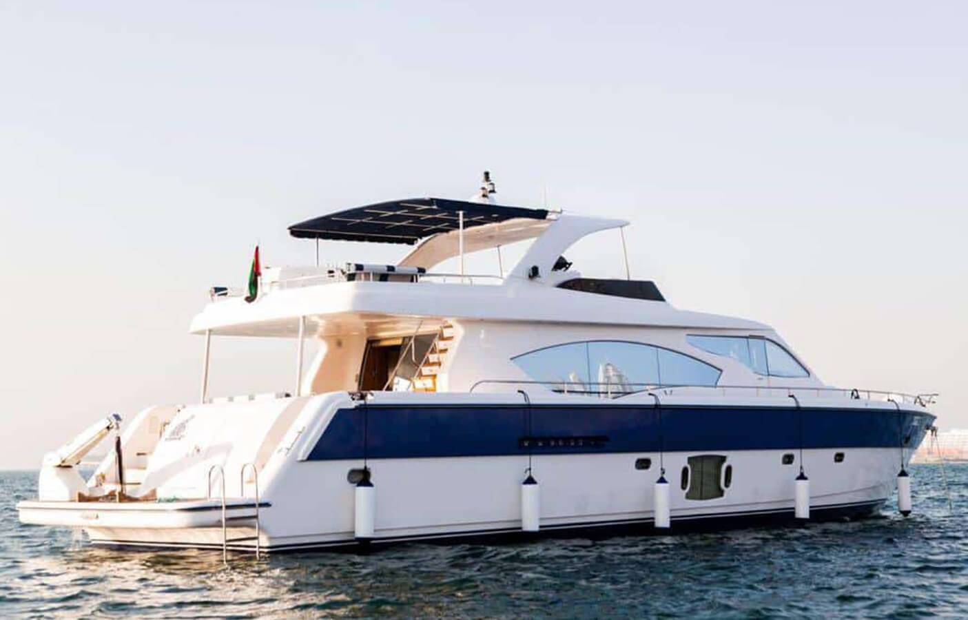 Our company is pleased to present the 88 Feet double-deck Luxury private yacht rental Dubai in Aed 799 each hour . Our Yacht, offering superb amenities for your unforgettable experience. With a spacious hall, two bedrooms, washroom, kitchen, music system, and comfortable seating on the flybridge, this yacht ensures your utmost comfort and enjoyment during your cruise.