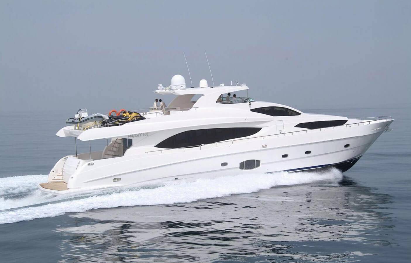 We are pleased to offer you the Top rated Majesty Brand Super Luxury 101 Feet yacht in Aed 2899 per hour only with the capacity of 58 guest with Super luxury facilities and Experienced staff. The yacht length is 101 FT and it has 4 Cabins + 4 toilets,3 Showers + Kitchen as well.and the very nice sitting place on the fly bridge as well.