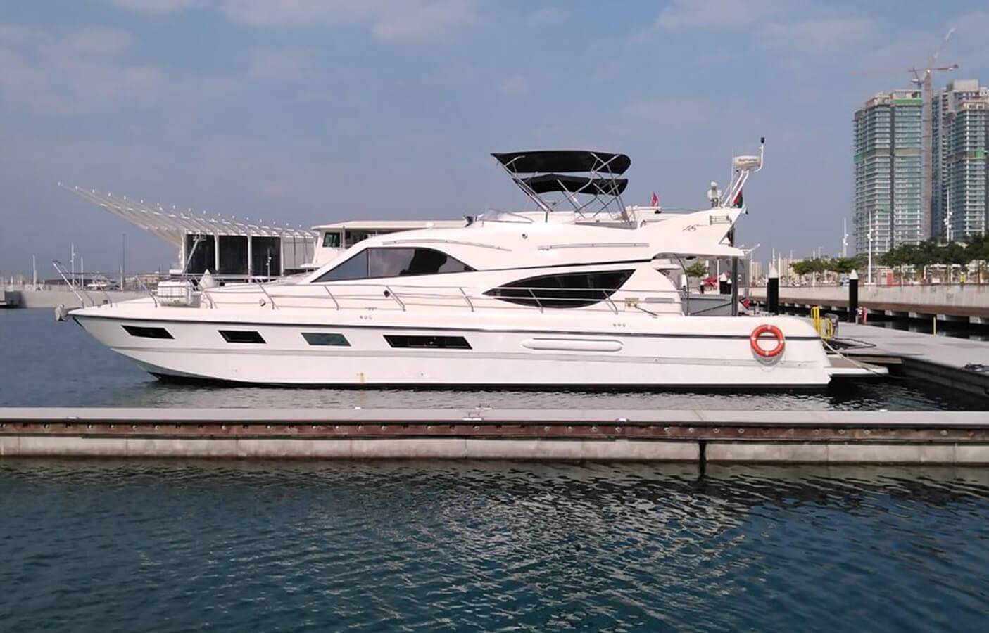 Our company is pleased to offers you the 95 feet double-deck Yacht Luxury private yacht rental With Jaccuzi with very spacious Hall along with the 3 bedrooms washroom kitchen, Music system and the very nice sitting place on the fly bridge as well in super discounted rates of Aed 2499 Each hour Only