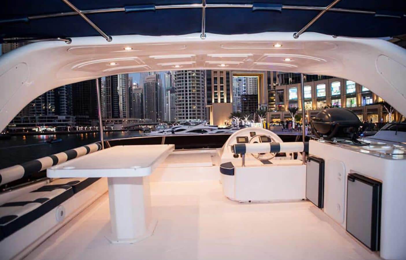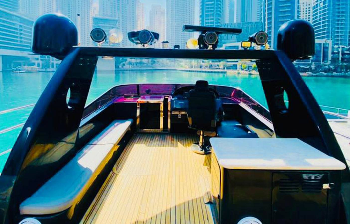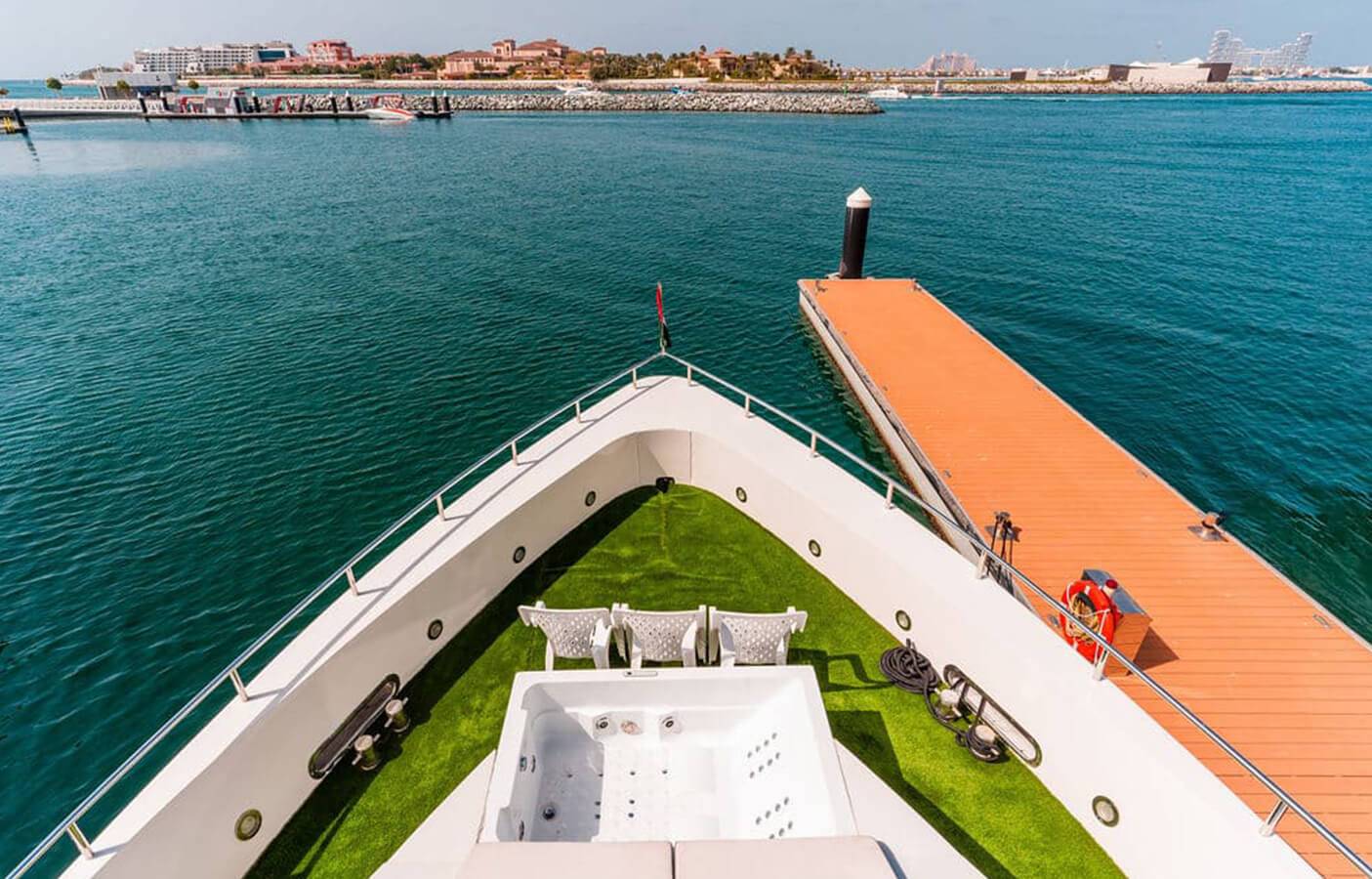 - Guide the Yacht as you please around the various sights of Dubai (e.g. The Palm Jumeirah, Burj Al Arab, Dubai Marina)