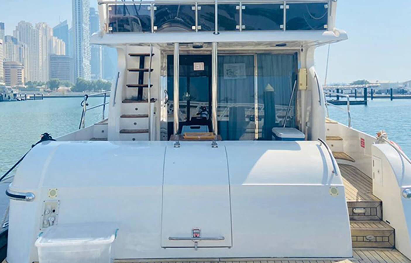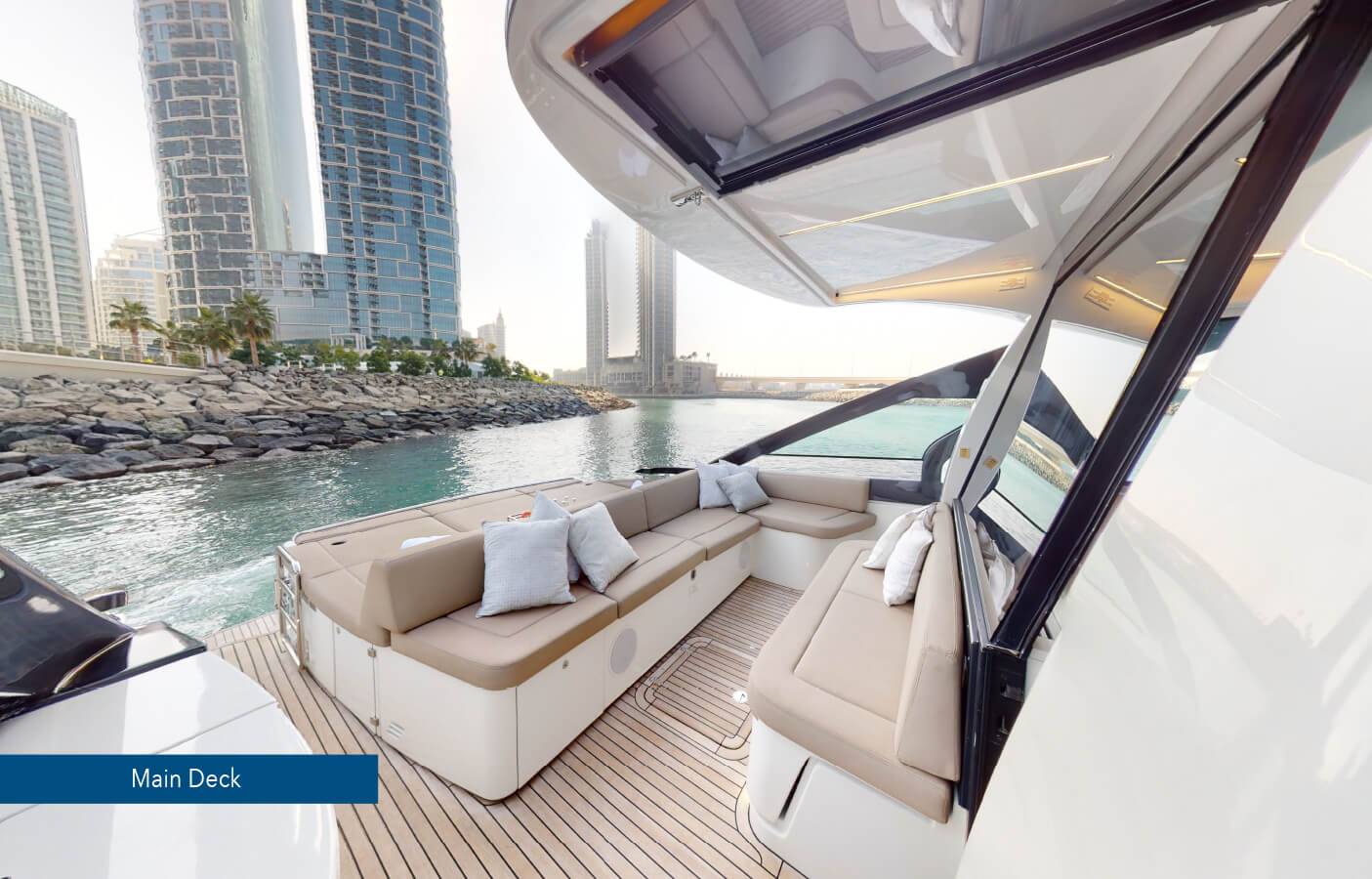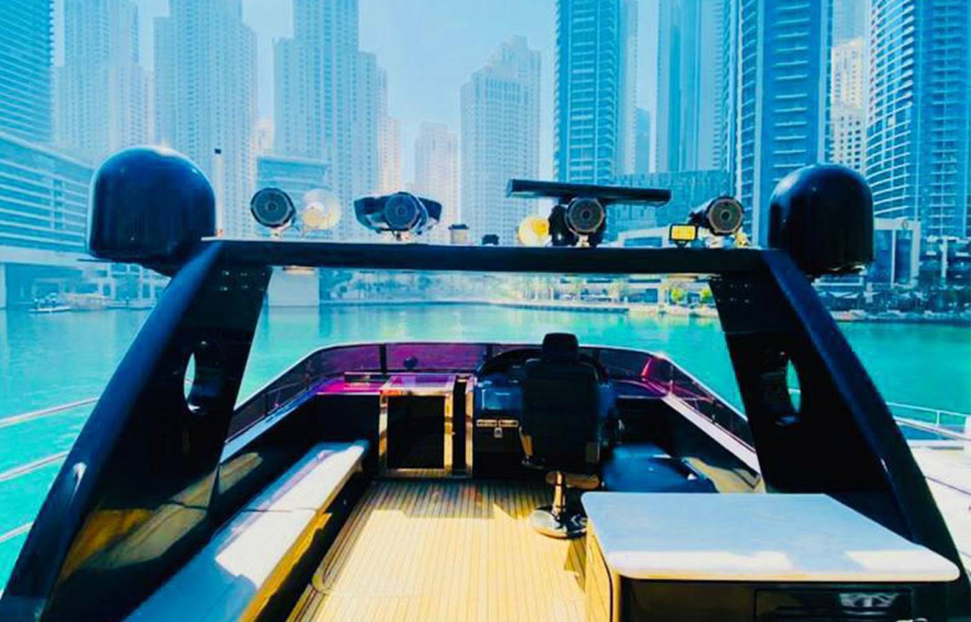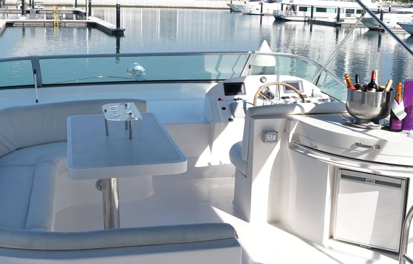 - Guide the Yacht as you please around the various sights of Dubai (e.g. The Palm Jumeirah, Burj Al Arab, Dubai Marina)