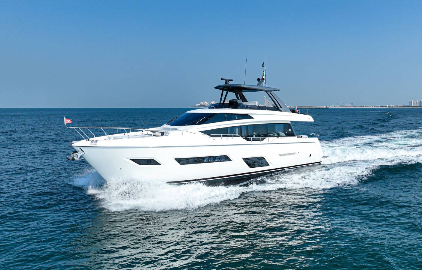 Treat yourself to luxury yachting aboard the exquisite 2019 Ferretti 780, available for charter from just AED 5,000 per hour. Designed to impress, this elegant yacht can accommodate up to 20 guests, making it the perfect choice for unforgettable meetings and celebrations.