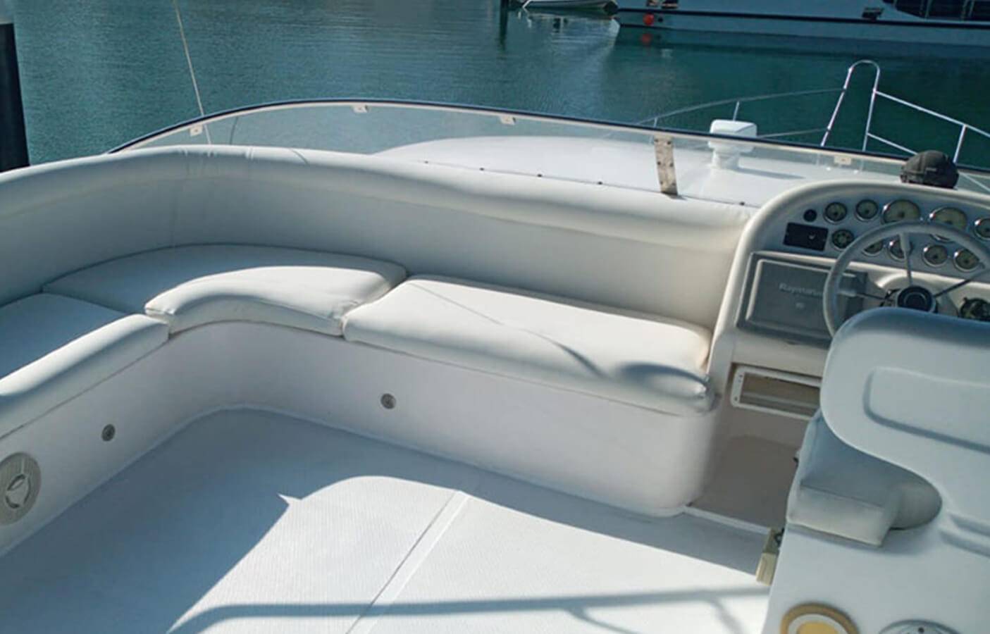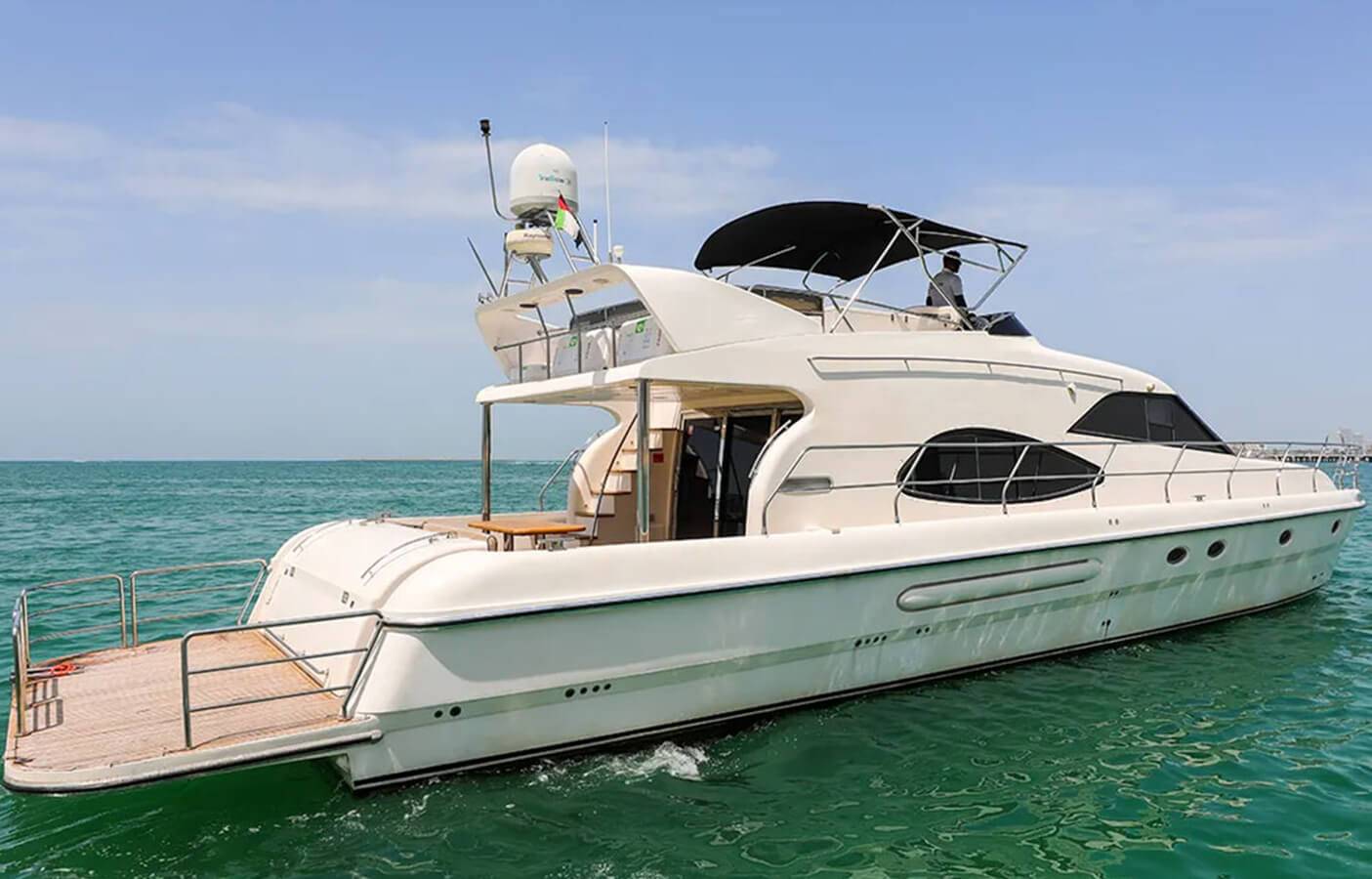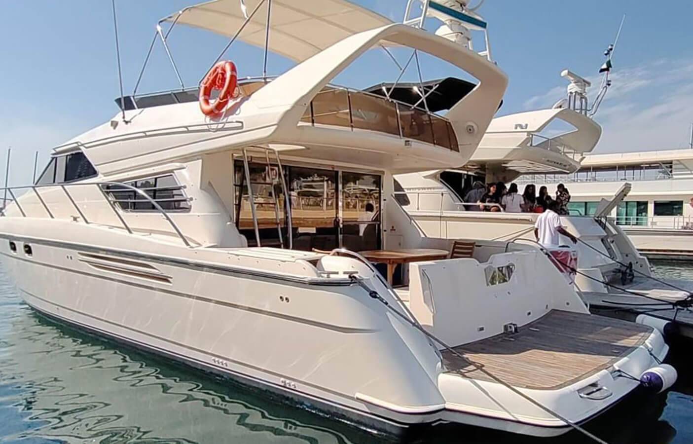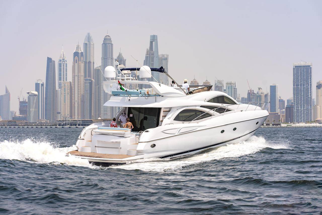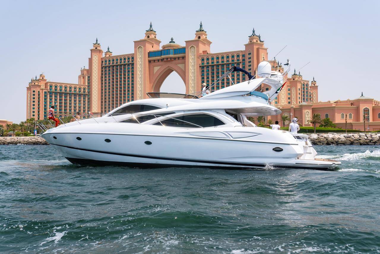 This luxury yacht is designed with exquisite designs and onboard facilities to be a unique private yacht from the Sunseeker collection. With this private boat hire, you will enjoy a Flybridge comprising an exceptional open deck and lounge seating. Equipped with a modern entertainment system and a stereo-sound Bose PA audio system, this luxury yacht rental service have become a popular choice available at reasonable prices in Dubai.