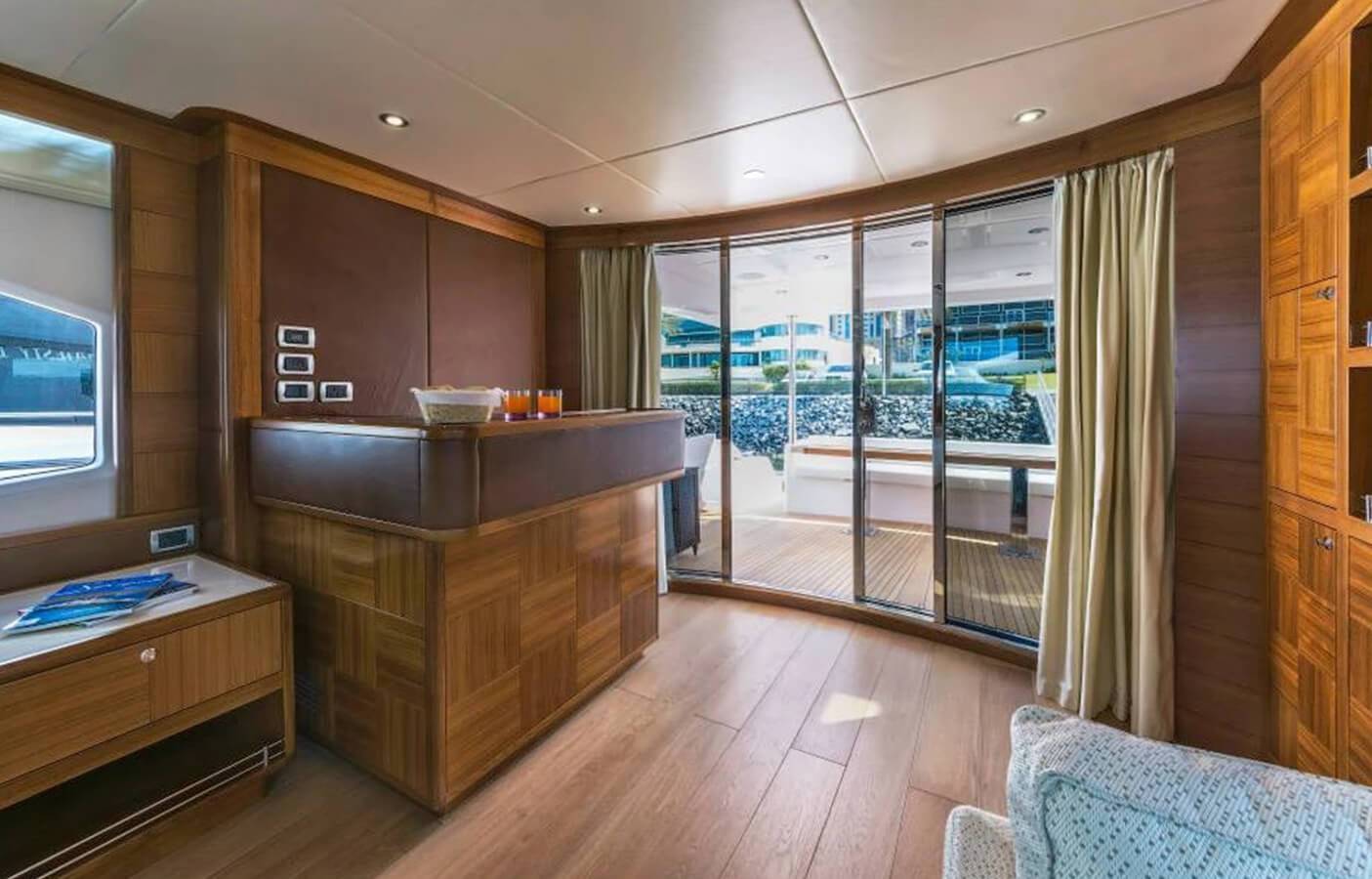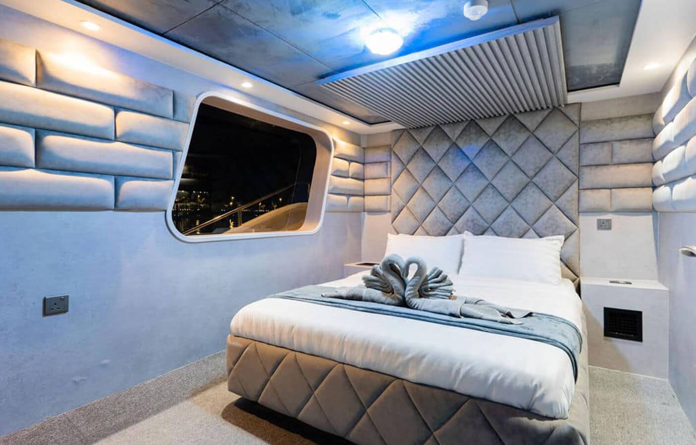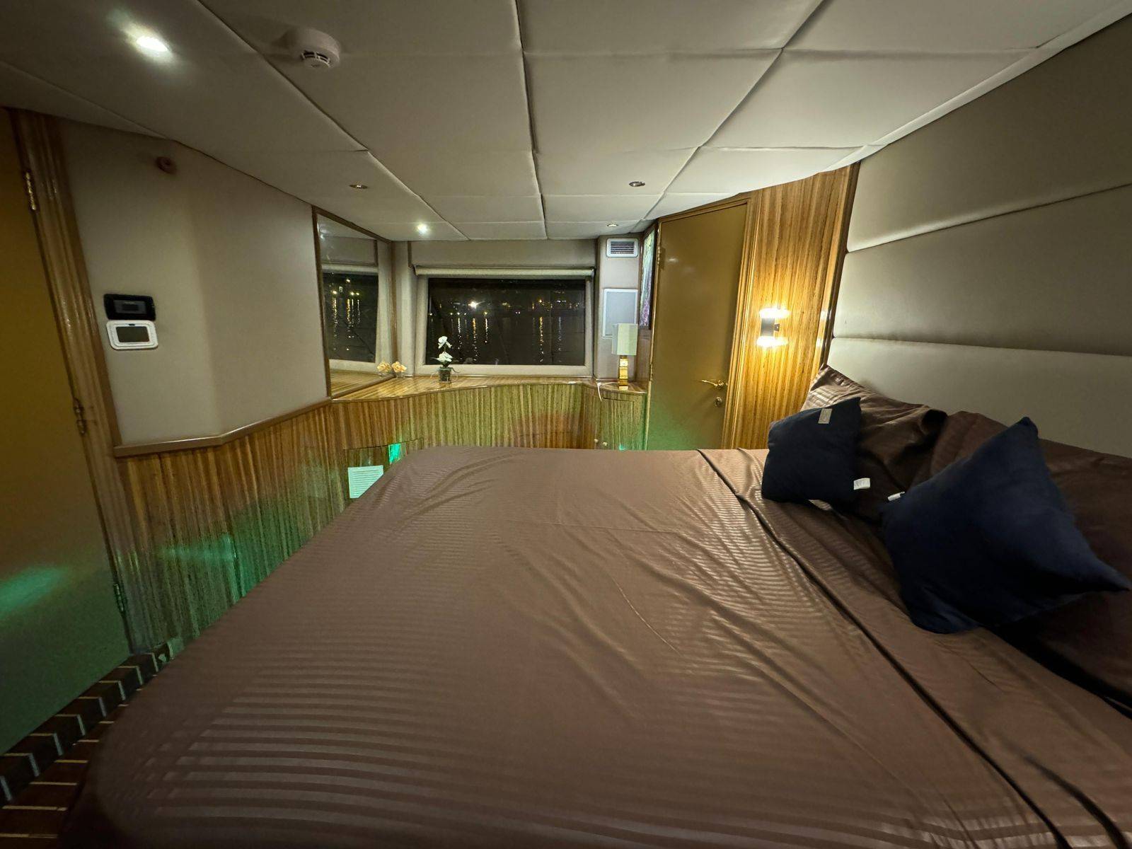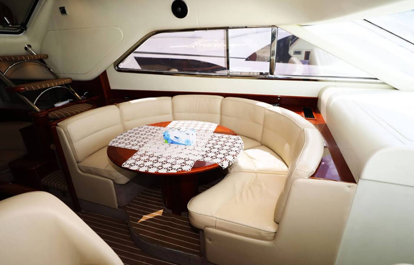 This stylishly built yacht can accommodate 15 guests at a time in its dining space both indoor and on the flybridge. It can also accommodate 6 guests overnight. There is 1 Master cabin, 1 Double cabin, and 1 twin cabin. The crew onboard ensures your comfort and takes care of all your needs, including cleaning, meals, and any help.