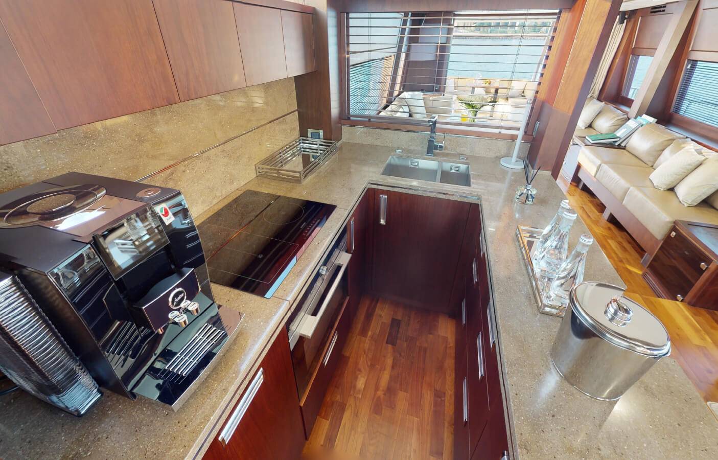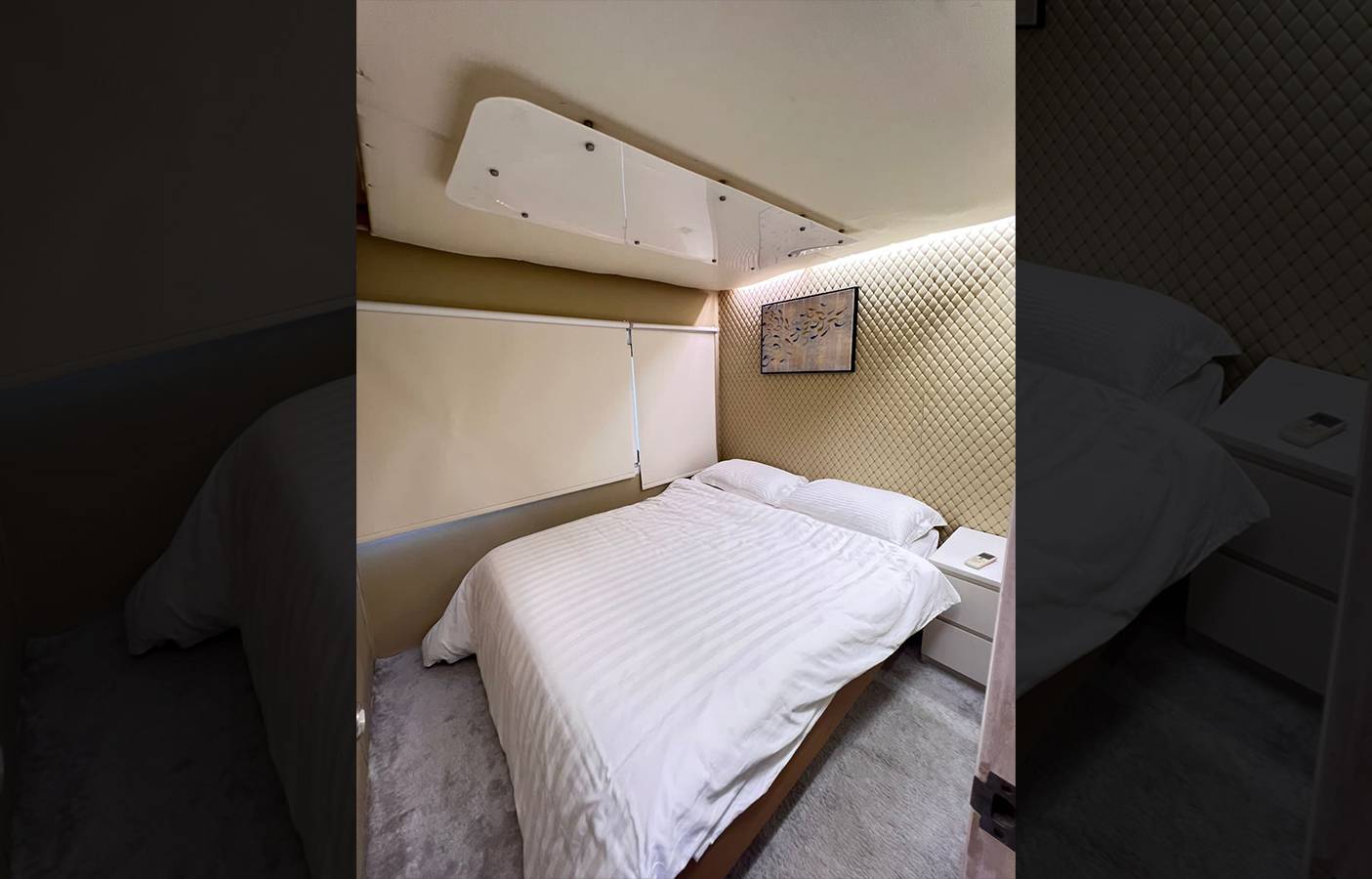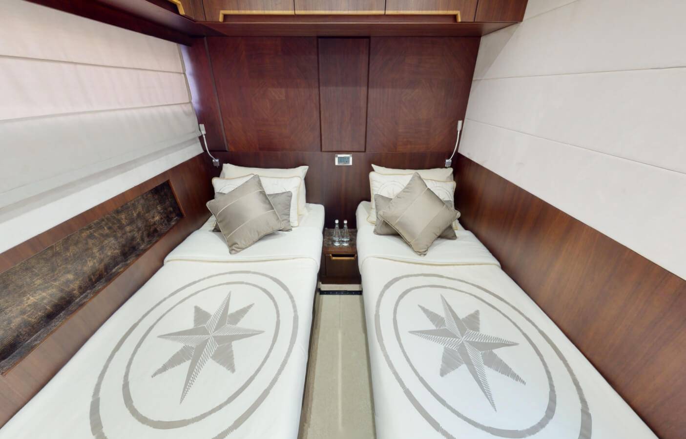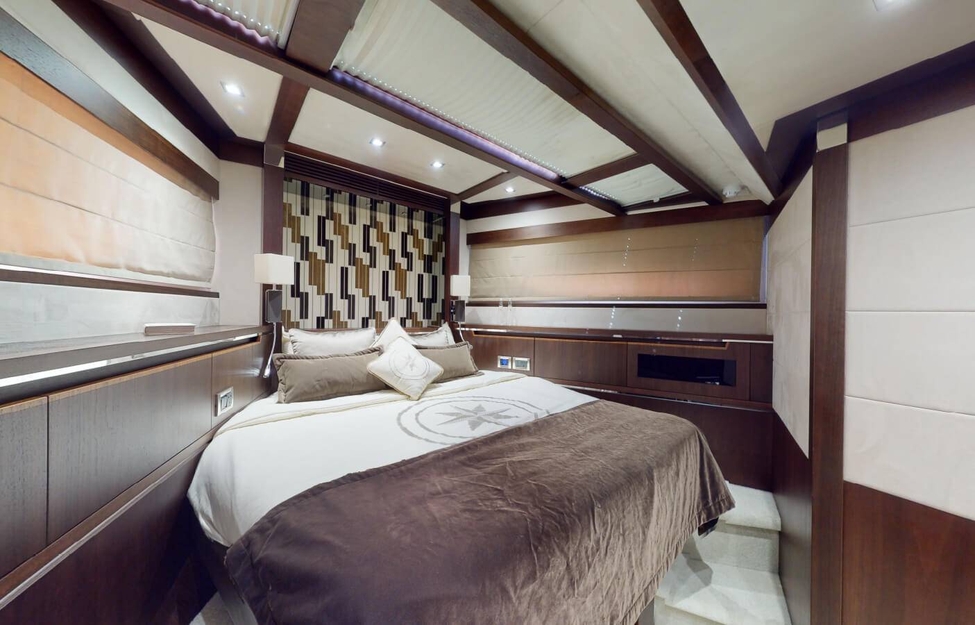 This stylishly built yacht can accommodate 15 guests at a time in its dining space both indoor and on the flybridge. It can also accommodate 6 guests overnight. There is 1 Master cabin, 1 Double cabin, and 1 twin cabin. The crew onboard ensures your comfort and takes care of all your needs, including cleaning, meals, and any help.