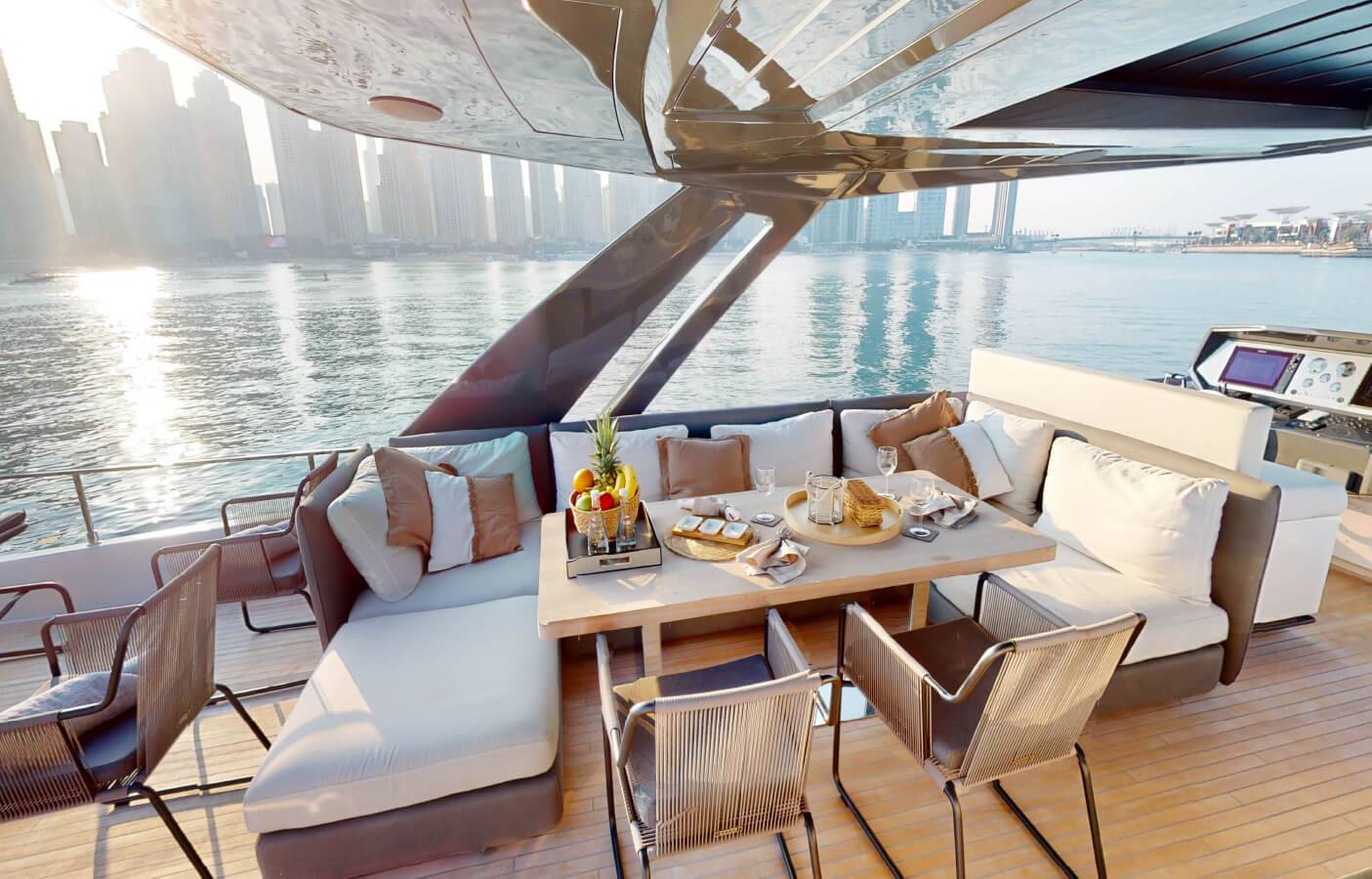 Guests can also enjoy barbecue service on board, with equipment available upon prior request. Experience the elegance and performance of the Ferretti 670 as you explore Dubai’s breathtaking coastline available through Yacht Rental Dubai for AED 2,499 per hour.