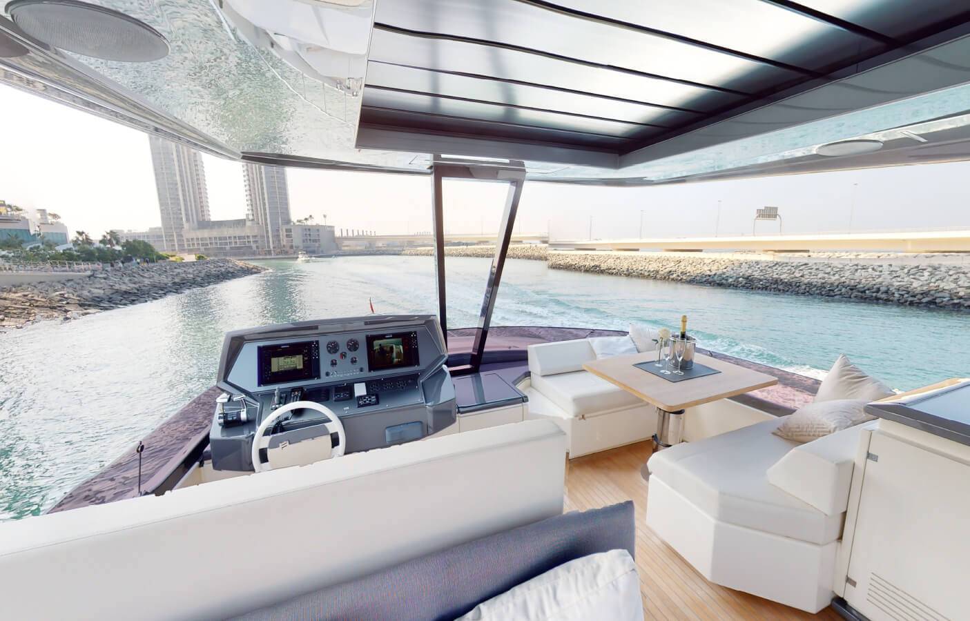 The Premium Ferretti 670 yacht, managed by Yacht Rental Dubai, is located in Dubai, UAE, offering an exceptional luxury cruising experience. Built in 2019 by the prestigious Ferretti brand, this stunning yacht features 3 elegant rooms and can comfortably accommodate up to 15 guests. Operated by 3 professional and highly experienced crew members, the Ferretti 670 ensures a seamless and enjoyable voyage.