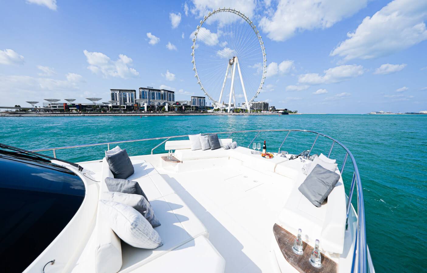 - Cruising Route : Dubai Marina -- JBR -- Blue water Island – Ain Dubai Ferris Wheel -- Palm Island , Atlantis The Palm Burj al arab