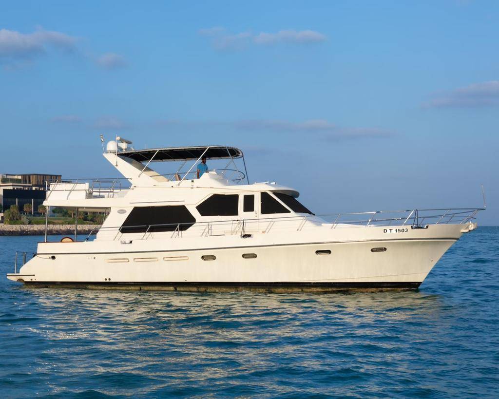 Our company is pleased to offer you the Top brand Princess 60 Feet Luxury Air-conditioned double deck Yacht good for 20 Guest Capacity with a 3 bedrooms Spacious lounge, 2 washrooms, kitchen, satellite television with a music system as well. Our price is Aed 599 per Hour only. Our offer includes water, soft drinks and ice along with music system and a Fully Air-conditioned yacht and you are allowed to bring your own food and drinks in the yacht also.